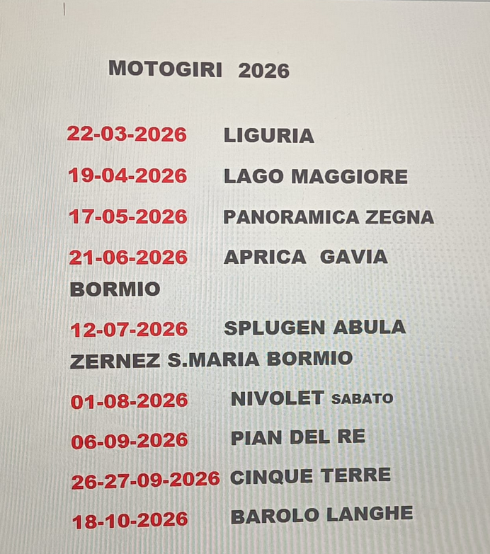 Ecco il calendario dei motogiri 2026.
