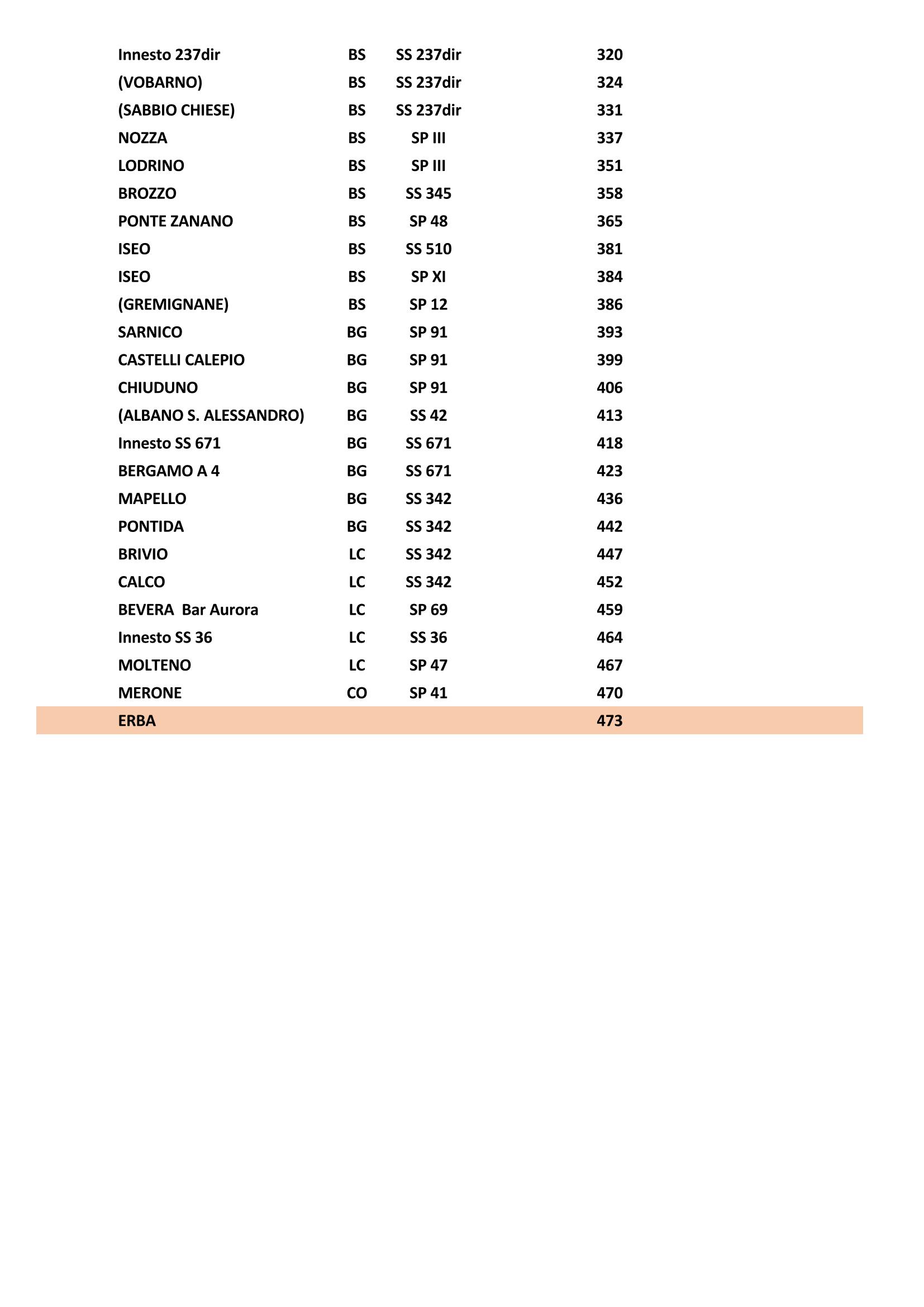 Partenza da Erba bar Cafferino alle ore 8:00